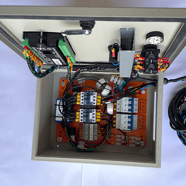 QTA utilizando chave de transferência automática com prioridade para Gerador 1, monitoramento de tensão, corrente e frequência para as duas fontes de energias, Gerador 1 e Gerador 2, utilizando placa STZ-MG2001; permite acionamento manual através de chaves seletoras e acionamento em automático.